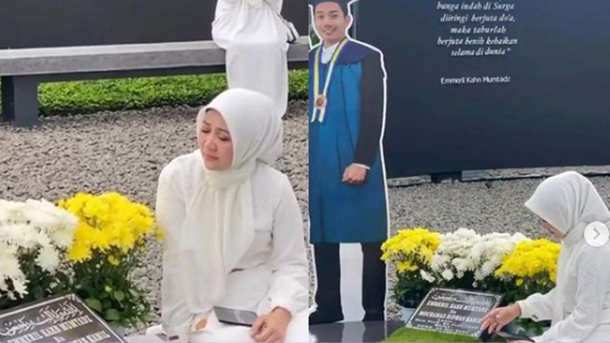 Atalia Praratya menangis di makam Emmeril Kahn Mumtadz atau biasa disapa Eril usai sang anak diwisuda di ITB secara in absentia.