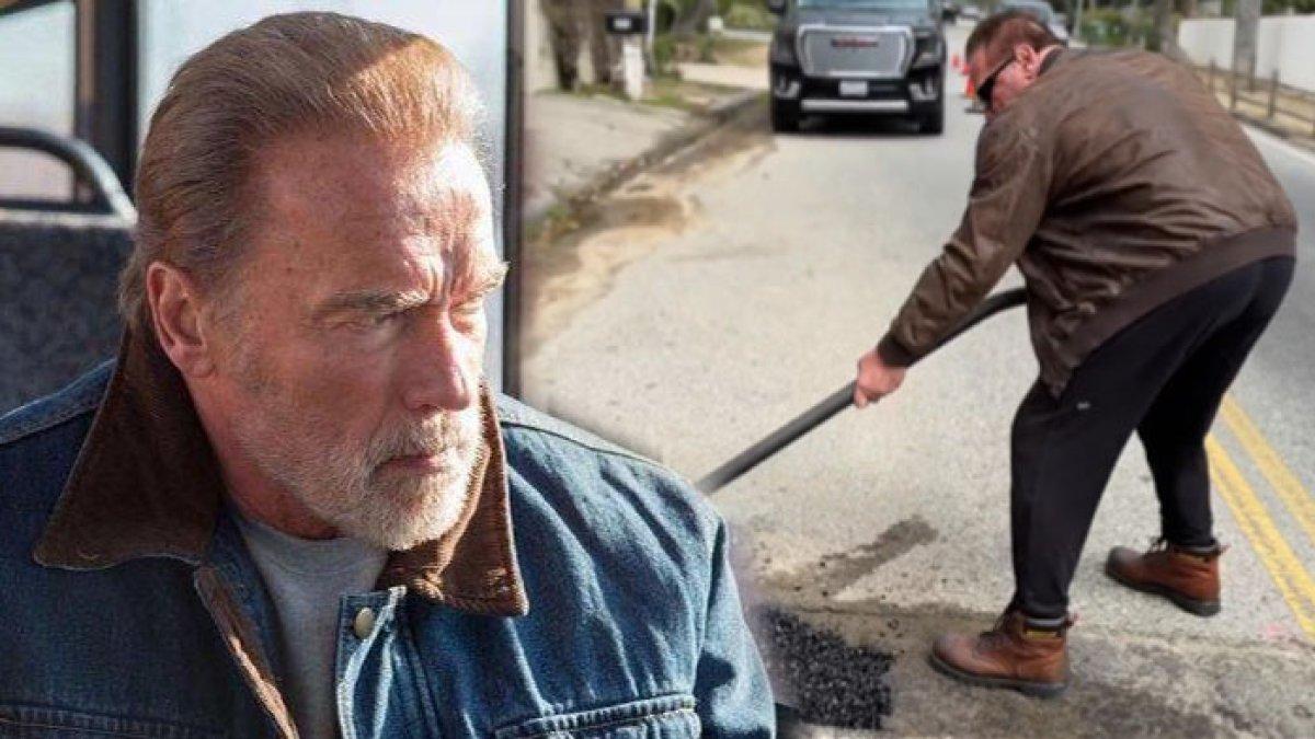 Arnold Schwarzenegger kedapatan menginisiasi perbaikan jalan rusak di kawasan tempat tinggalnya, Los Angeles, Amerika Serikat.