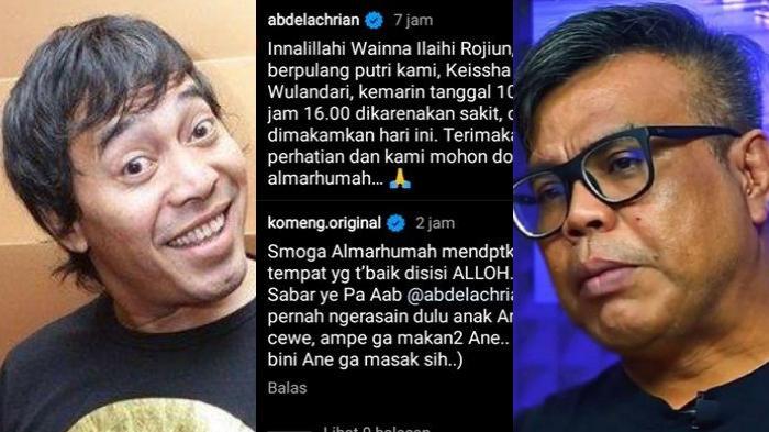 Warganet di Twitter mempermasalahkan komentar Komeng di unggahan Abdel ketika putrinya meninggal dunia.