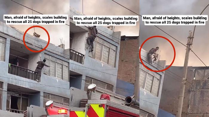 Dramatis! Seorang pria yang takut ketinggian nekat memanjat gedung yang terbakar. Ternyata selamatkan 25 anjing terjebak di sana.