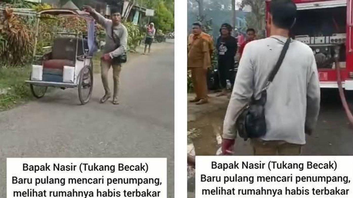 "SEORANG TUKANG BECAK PERGI MENCARI SESUAP NASI, NAAS SAAT PULANG RUMAHNYA SUDAH HABIS TERBAKAR.