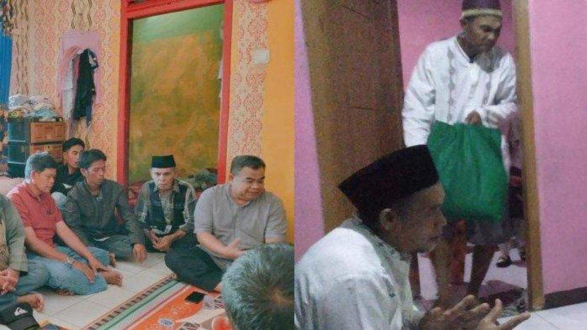 Kepala Dinas Pendidikan Kabupaten Sukabumi, Jujun Juaeni (paling kanan), saat bertakziah ke rumah korban. (Dok Dinas Pendidikan)