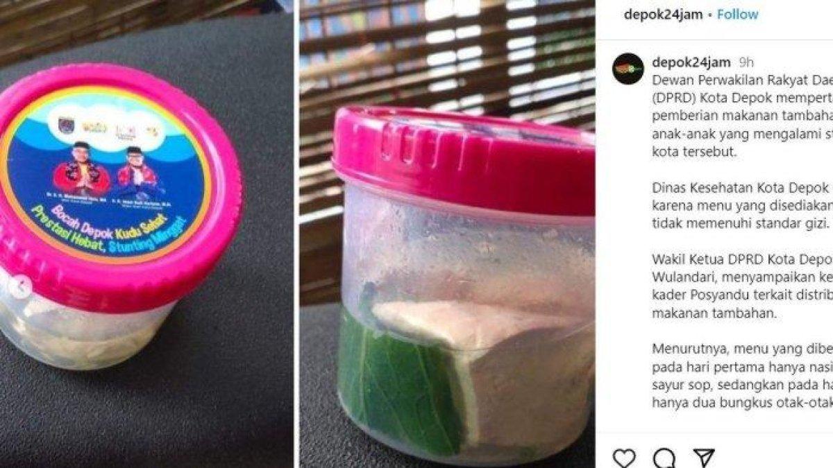 Ramai di media sosial soal foto yang menunjukkan menu pencegah stunting dalam program Pemberian Makanan Tambahan (PMT) di Kota Depok.