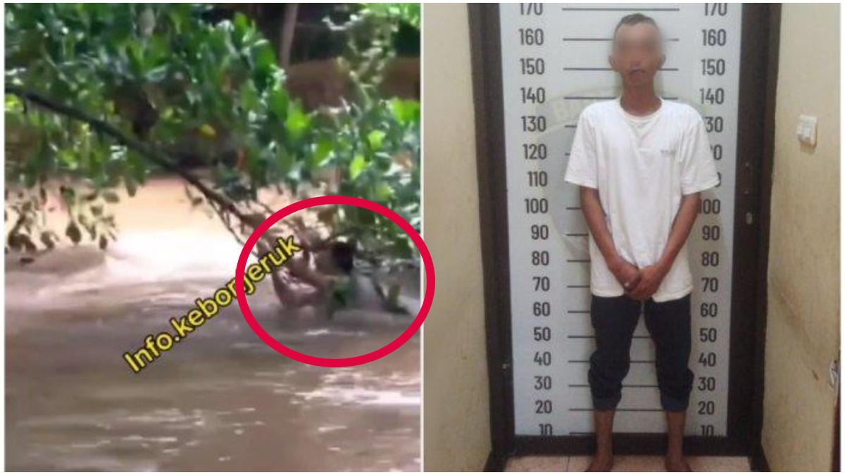 Aksi yang diketahui oleh warga sekitar pun membuat pelaku ketakutan hingga salah satunya menceburkan diri ke kali.