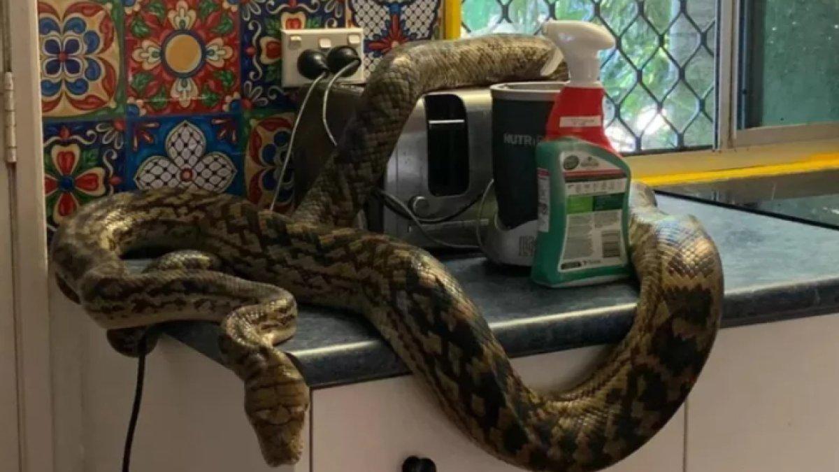 Seorang pria syok saat hendak sarapan, ada ular piton raksasa tergeletak di dapurnya. Langsung panggil tim penyelamat!
