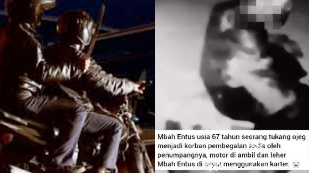 Disebutkan dalam keterangan unggahan tersebut, begal yang menyamar jadi penumpang itu menyayat leher Mbah Entus.