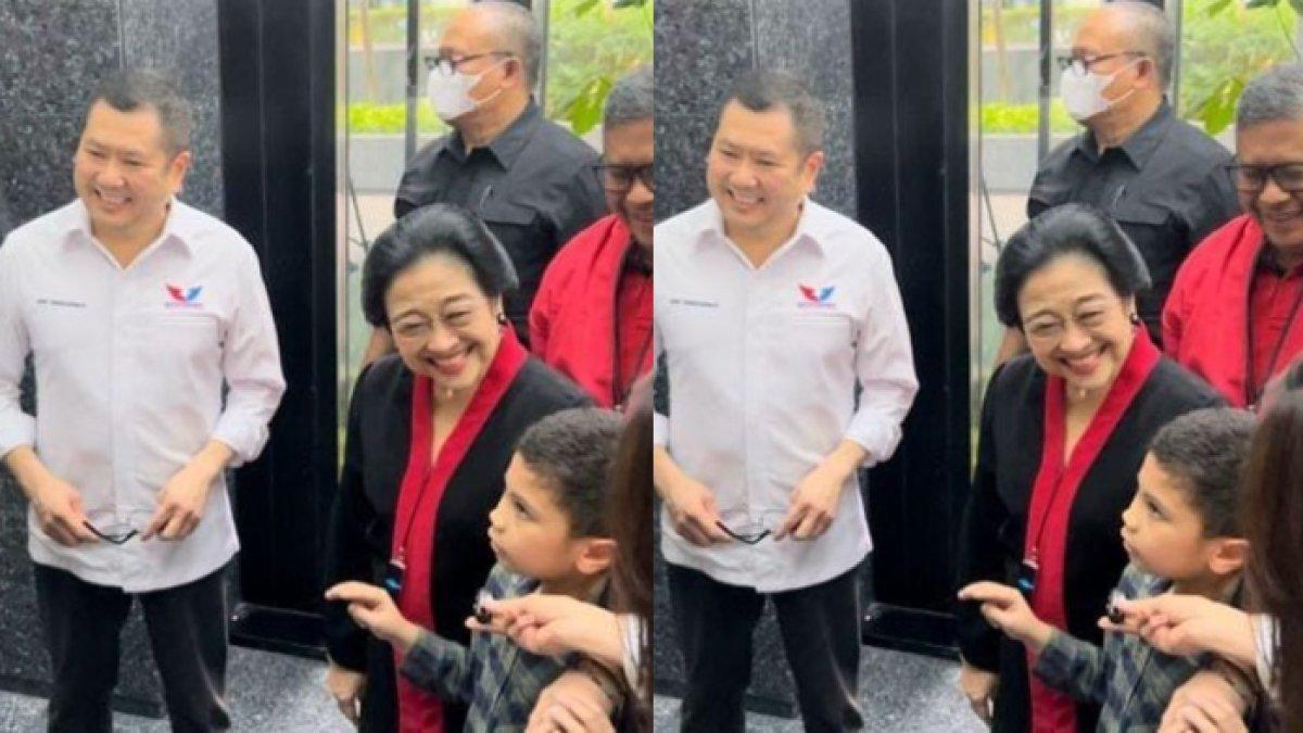 Kala itu, Megawati turut disambut oleh calon presiden nomor urut 3 Ganjar Pranowo dan Ketua Umum Partai Perindo Hary Tanoesoedibjo (HT)