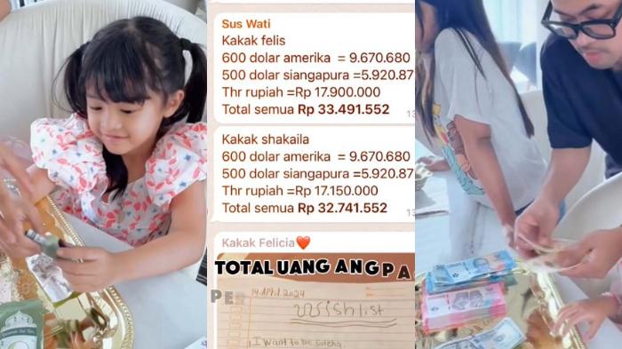 TRIBUNSTYLE.COM - Momen Shandy Purnamasari dan Gilang Widya Pramana hitung uang THR yang diperoleh anaknya. Cuan dapat dolar segepok total capai Rp100 juta.
