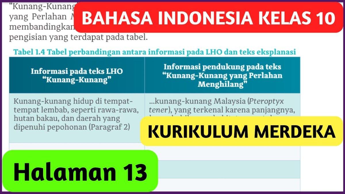 Simak kunci jawaban mata pelajaran Bahasa Indonesia kelas 10 halaman 13 Kurikulum Merdeka: teks observasi dan eksplanasi.