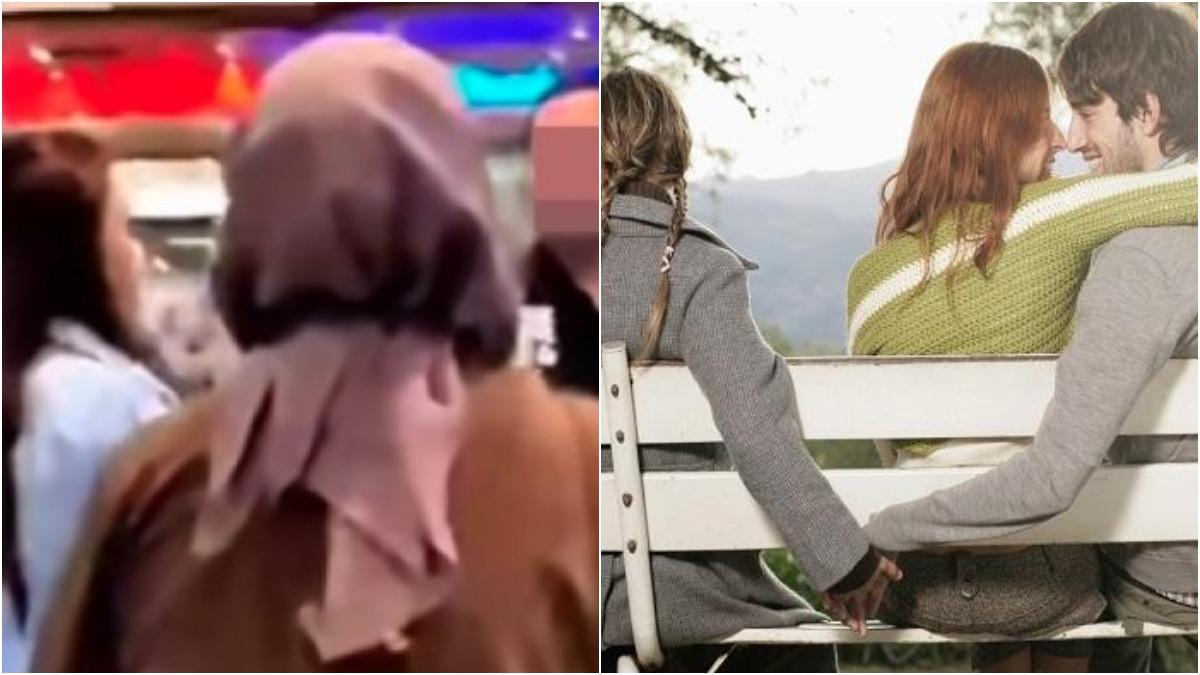 Momen semakin memanas ketika istri sah yang mengenakan hijab langsung mendatangi mereka dan berteriak, "Aku istrinya."