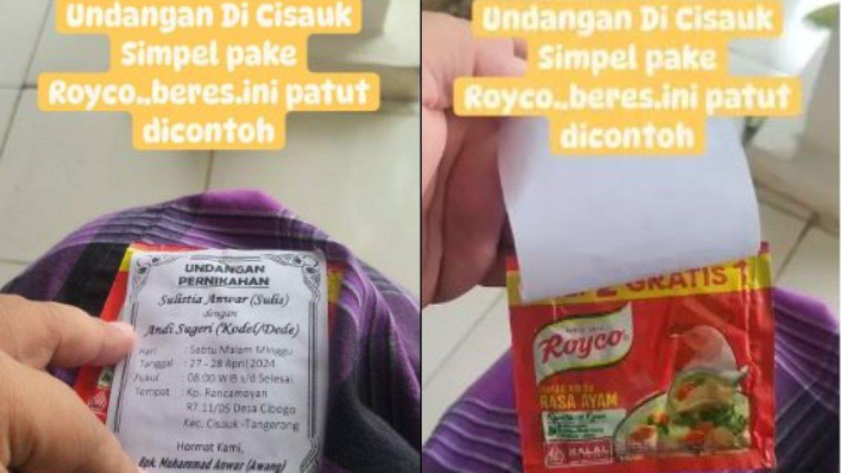 Viral undangan pernikahan di Cisauk, Bogor, Jawa Barat, yang terbilang cukup unik. Dicetak kertas tipis, tertempel sebungkus penyedap rasa.