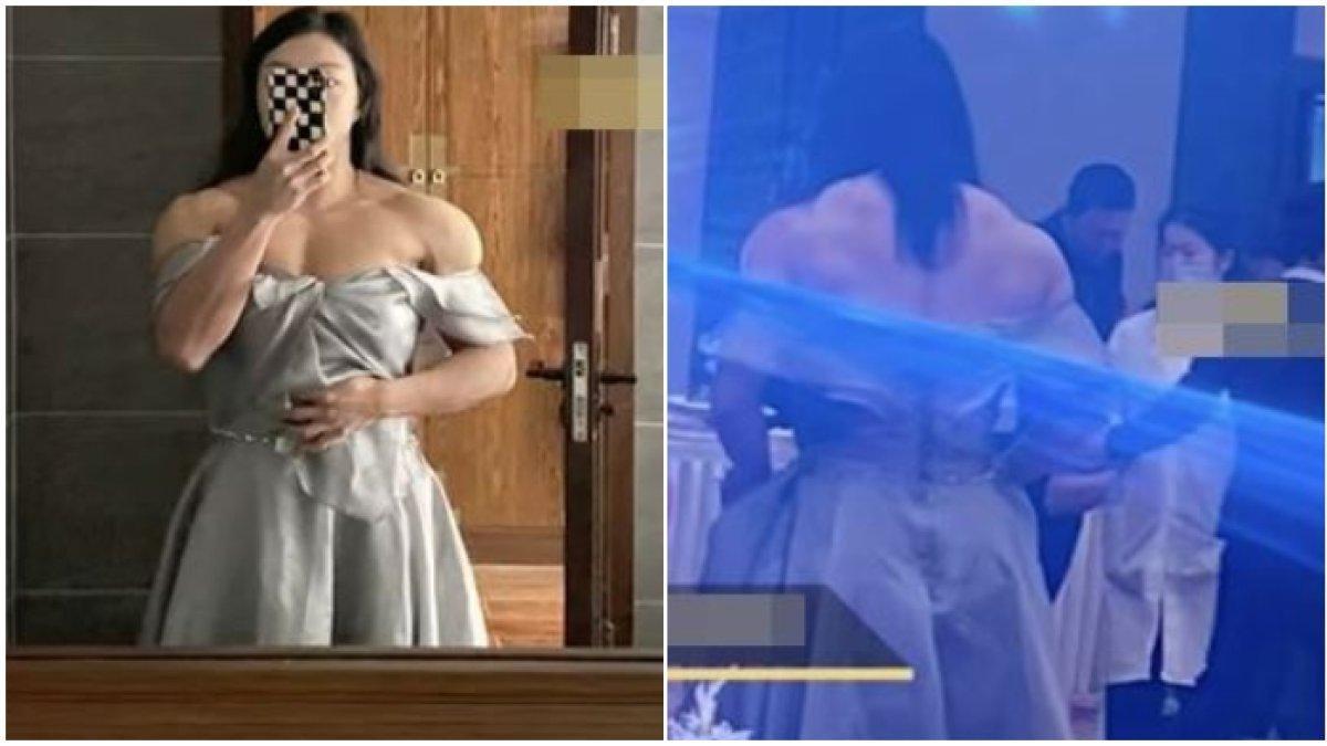 Seorang wanita bertugas menjadi bridesmaid di pernikahan sang sahabat. Penampilannya curi perhatian lantaran kekar berotot saat memakai gaun.