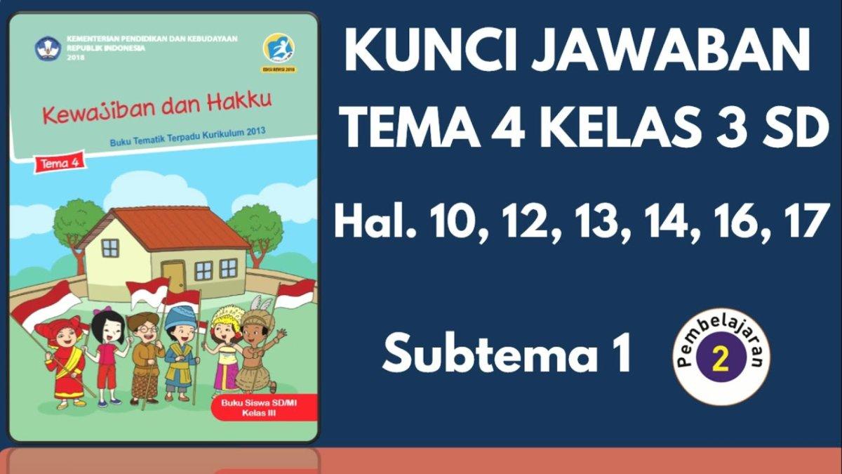 Soal materi Tema 4 kelas 3 SD berjudul Kewajiban dan Hakku Subtema 1 Pembelajaran 2 halaman 10, 11, 12, 13, 14, 15, 16, dan 17.
